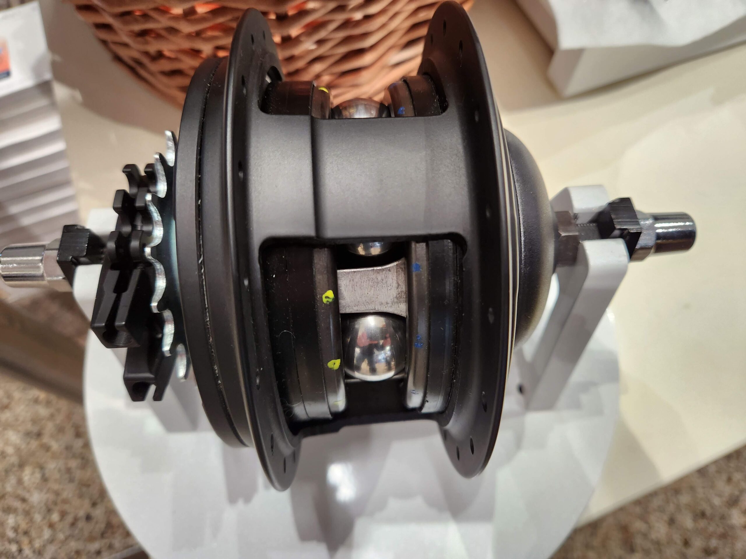 Möglich wird das bei der Enviolo durch Kugeln die in Gänze ihre Neigung verändern können. Ähnlich einer Kettenschaltung, kann man hier sozusagen die “Kränze” tauschen. Mit dem passenden Öl wird dann noch die Haftung im Innern der Schaltung verbessert. Das Öl verhält sich unter Belastung ähnlich wie Speisestärke mit Wasser vermischt. Unter Druck wird es fest, ansonsten ist es flüssig.