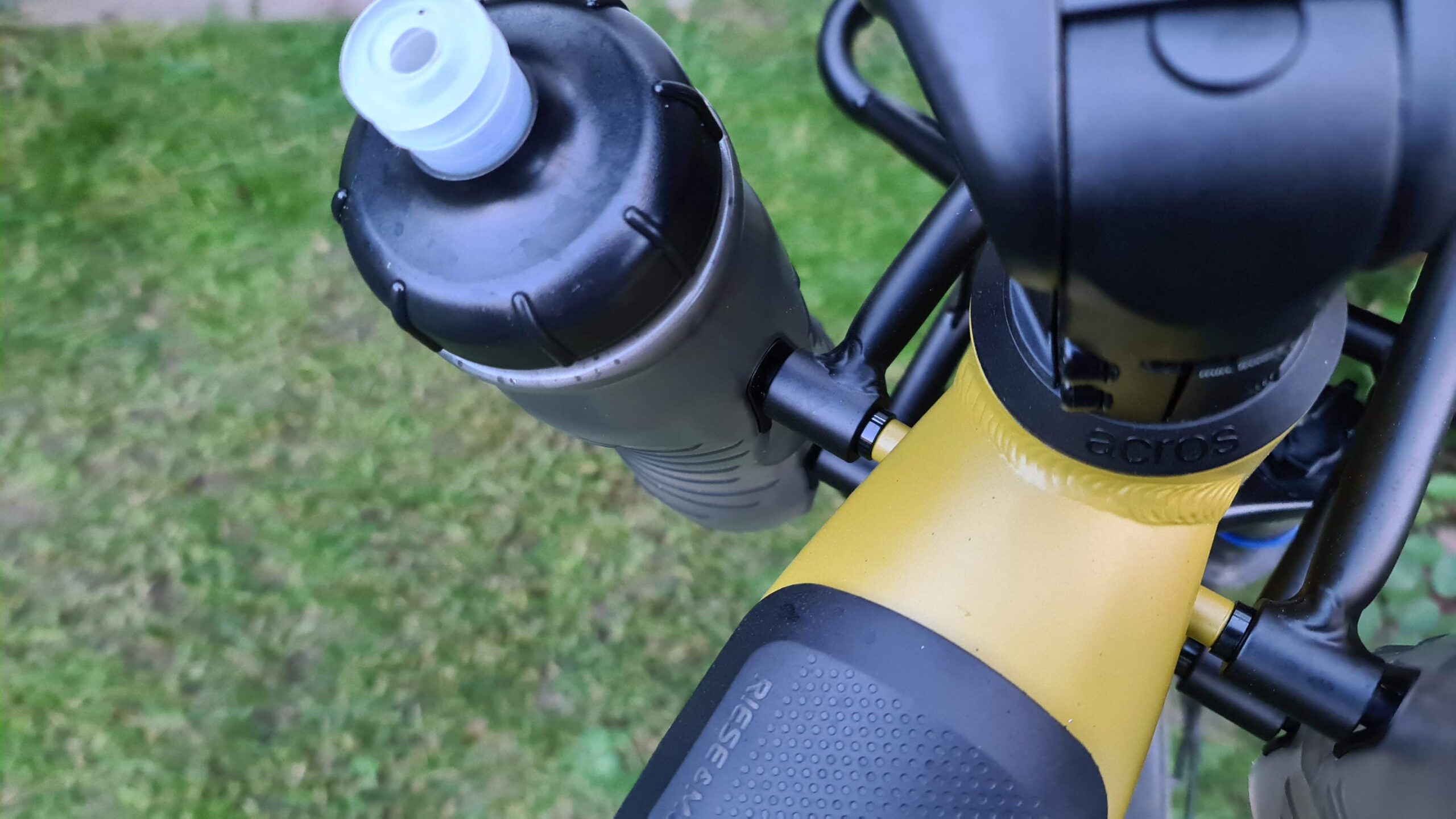 Wo wir gerade beim Cockpit sind. Hier hat Riese & Müller einen Flaschenhalter im Gepäckträger integriert. Zu meinem erstaunen hielten die Flaschen auch im Gelände. Bei Nacht und Dunkelheit ist das einklicken der Flaschen manchmal etwas herausfordernd. Sozusagen ein klassischer Fall von Designer und grüner Tisch. Wobei ich eh sagen muss, dass ich eher Edelstahlflaschen favorisiere. Wasser und Flaschen bleiben länger frisch, ohne das sich irgendwo Moose und Algen bilden.