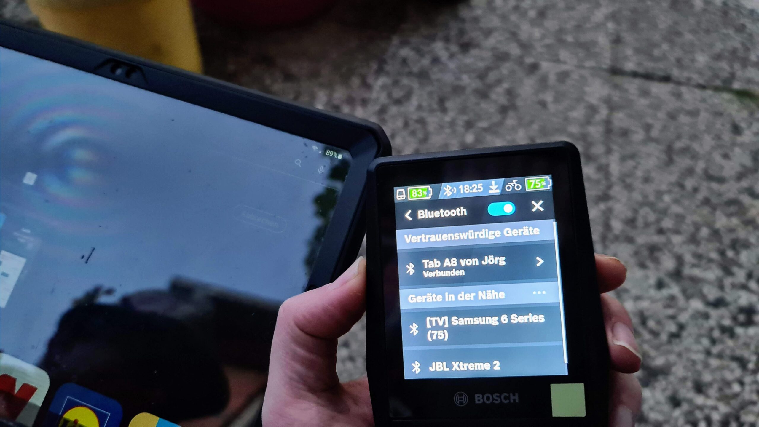 Dieses Rad ist mit 2 x 625Wh Akkus ausgestattet (Serienmäßig – 2 x 500Wh) und einem Nyon-Fahrradcomputer (Serienmäßig – Kiox). Der Nyon hat den Vorteil, dass man auch ohne Smartphone navigieren kann. Ansonsten ist der Kiox nicht zu verachten, er macht das was er soll. Das synchronisieren der Aktivitäten machen beide Varianten über das per Bluetooth verbundene Smartphone. Der Kiox lässt sich nicht per Touch bedienen!