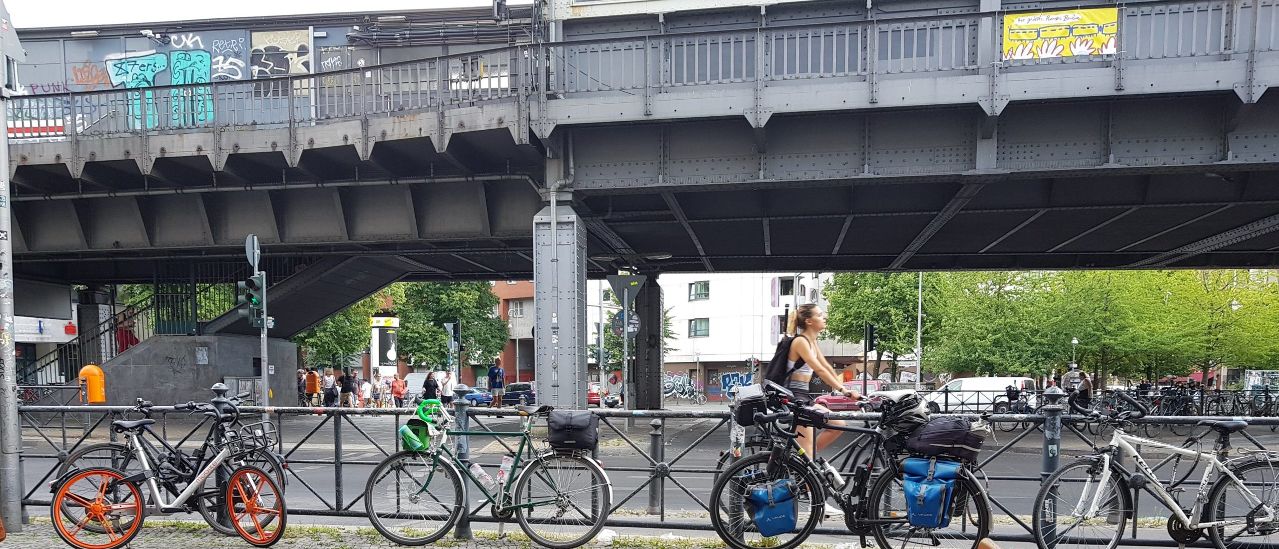 Heute war in Berlin gefühlt wohl der Tag des Aufstandes. Der Plan war für heute, an der Kreisfahrt teilzunehmen. In meinem jugendlichem Leichtsinn dachte ich mir, fahr mal bis Berlin Hauptbahnhof. Am Hauptbahnhof angekommen, musste ich wieder in die Bahn zum Potsdamer Platz einsteigen, da vor dem Bahnhof eine Demo ihr Unwesen trieb. Irgendetwas mit Kapitalismus und Mieten, soweit ich das erkennen konnte. Am Potsdamer Platz angekommen, reihte ich mich gleich in die aufgestaute Verkehrsblockade aus Fahrrädern ein. Um 14:15 fing dann die Kreisfahrt, angeführt von einem Toyota Prius der Berliner Polizei, an.